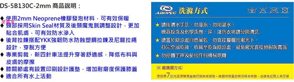 款式區分:《用品》2mm Neoprene兒童長袖長褲防寒衣系列